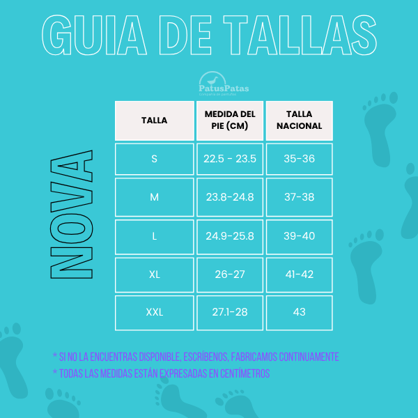 4. GUIA DE TALLAS PARA REFERENCIA PANTUFLAS TIPO SUECO NOVA
